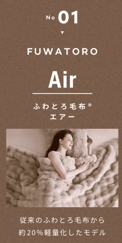 軽さを求めている方には“FUWATORO Air”を、ボリューム感やあたたかさを求めている方には“FUWATORO Air Premium”が最適です!